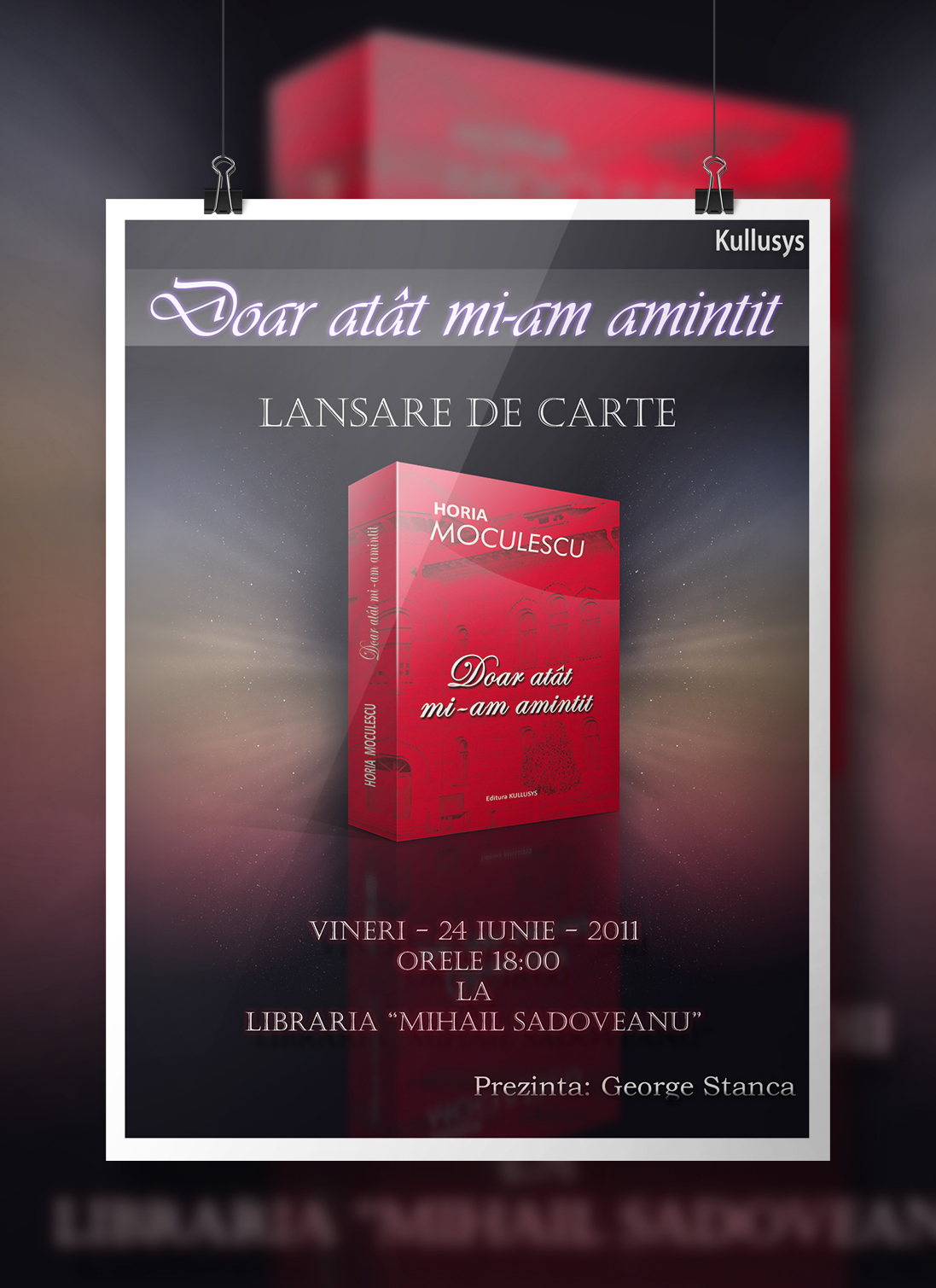 Lansare de carte Afis – lansare de carte – Client: Editura Kullusys Category: Grafica Publicitara Related Projects ← Previous ProjectNext Project → MCA ComercialFind out more →TV SUD ESTFind out more →Alexandru VlahutaFind out more →Centrul Cultural Florica CristoforeanuFind out more →Arcada magazinFind out more →TombolaFind out more →Colegiul National Alexandru VlahutaFind out more →TV SEFind out more →